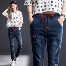 2016春装初中高中女小学生牛仔裤少女宽松哈伦裤松紧腰小脚休闲裤