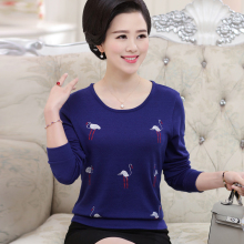 2017春新款妈妈装大码绣花针织衫套头毛衣中老年女装长袖打底衫