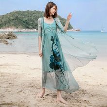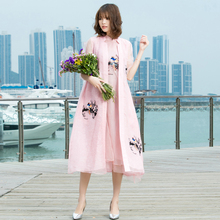 2017夏季大码民族风长款印花真丝连衣裙套装裙宽松a字裙两件套潮