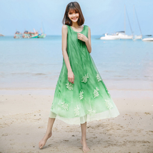 2017夏季新款无袖圆领绣花大码真丝连衣裙长裙a字裙桑蚕丝气质潮