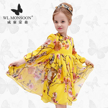 欧美高端品牌童装女童连衣裙夏装长袖雪纺儿童裙女大童公主裙2016