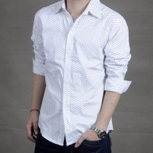 2-11男式春秋男士长袖衬衫韩版修身波点圆点免烫休闲衬衣潮男装潮