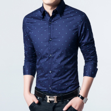 2017秋款男士长袖纯棉印花商务休闲韩版修身衬衫男款大码衬衣