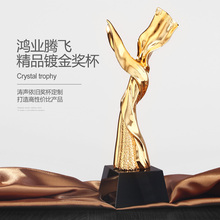 涛声依旧新款树脂奖杯镀金高档水晶奖杯定制创意金属奖杯翅膀刻字