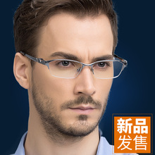 眼镜框男近视眼镜半框商务纯钛眼镜架大脸眼睛框配近视眼镜框男款