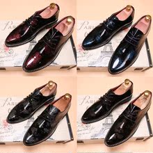 休闲皮鞋男发型师英伦系带新郎鞋青少年黑色尖头男鞋增高夜店潮鞋
