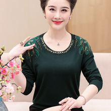 中老年女装春装针织衫长袖T恤打底衫中年妇女大码宽松妈妈装上衣