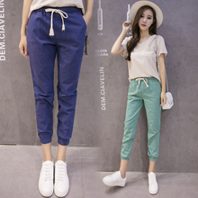 棉麻九分裤女夏季宽松哈伦裤学生休闲小脚女裤亚麻束口七分裤女薄