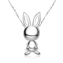 925纯银镀白金项链 女士新款项坠首饰品 活泼兔生肖吊坠 短款锁骨