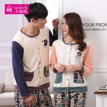 韩版春秋季情侣睡衣长袖套装卡通开衫男女士家居服两件套大码套装