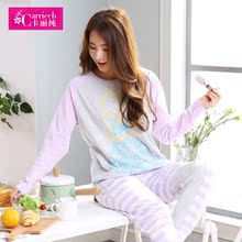 秋装睡衣女套装长袖可爱卡通家居服韩版春秋季开衫简约休闲套装女