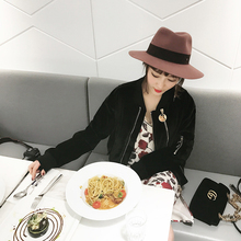 于momo春款丝绒长袖黑色短外套韩版休闲宽松棒球服夹克飞行服女潮