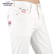 潮牌青年牛仔裤弹力薄款男裤布鲁斯鲨鱼男装裤子男士宽松直筒长裤