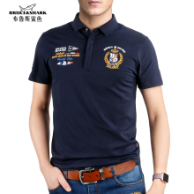 潮牌t恤男士短袖布鲁斯鲨鱼男装大码polo衫宽松体恤青年纯色衣服