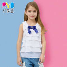 红黄蓝童装2017夏装新款 女童雪纺蝴蝶结上衣儿童蛋糕裙无袖T恤裙