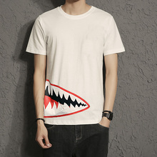 夏天新款日系短袖T恤男时尚鳄鱼嘴tee印花圆领纯棉半袖体恤衫潮流