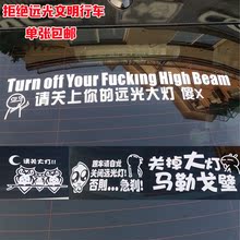 文字卡通搞笑 文明开车 关闭远光灯 关大灯 车贴 反光贴 汽车贴纸