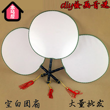 大中小空白diy绘画扇子批发 白色扇面团扇宫扇圆扇儿童手工材料包