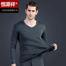 恒源祥男士V领保暖内衣男 莫代尔加绒加厚秋衣秋裤棉毛衫套装青年