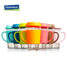 韩国GLASSLOCK玻璃杯带手柄透明水杯微波炉专用带盖牛奶杯MCWB037