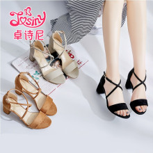 卓诗尼凉鞋女夏季2017新款韩版百搭高跟粗跟一字扣带绑带女鞋子