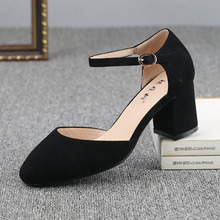 福禄桐2017夏季老北京布鞋女低帮凉鞋一字式口袋粗跟高跟女鞋子