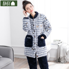 静韵2016新款睡衣冬季长袖可爱女人加厚保暖夹棉珊瑚绒睡衣家居服