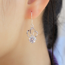 S925纯银耳环 银饰品包邮 日韩气质短款淑女耳饰水晶锆石皇冠耳坠