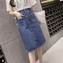 春夏韩版学院风高腰牛仔半身裙女中长款包臀裙百搭休闲a字裙宽松
