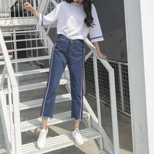 2017春夏韩版宽松显瘦高腰牛仔裤女百搭阔腿九分裤学生毛边直筒裤