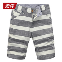 夏天薄款全棉休闲运动短裤男条纹5五分裤直筒半截中裤子韩版潮流