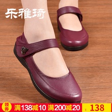 乐雅琦真皮软底女单鞋低跟搭扣舒适中老年妈妈鞋34-43大码女鞋