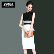 海青蓝2017夏装新款名媛气质修身时尚淑女无袖包臀裙连衣裙女1065