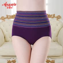 安娜芙棉 女士 彩色条纹 高腰性感双层收腹提臀包臀女士内裤