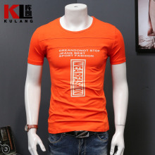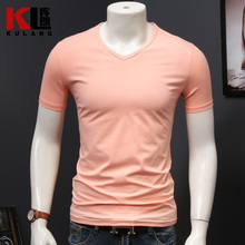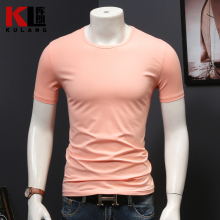 库朗2017新品男士短袖T恤橙色修身竹节棉上衣粉色衣服男装青年潮