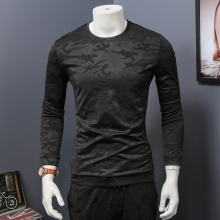 2017春季长袖T恤男青年圆领修身迷彩打底衫百搭潮男新款春装上衣