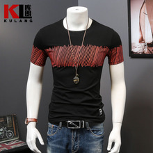 库朗2017夏季新品男士短袖T恤丝光棉半袖拼接体恤衫青年上衣男潮