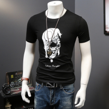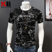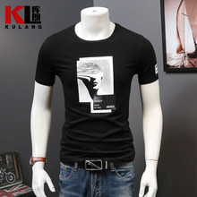 库朗夏季男装精神小伙短袖T恤男白色圆领修身人物印花衣服潮社会