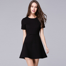 圆领显瘦黑色a字裙 春秋连衣裙女2016新款高腰短裙修身打底裙减龄