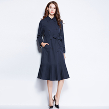 优雅系带百褶风衣裙春秋 风衣女中长款韩版冬季2017新款时尚外套