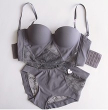 法国外单k`s性感洛丽塔侧收聚拢深V型低心位蕾丝文胸套装 大码