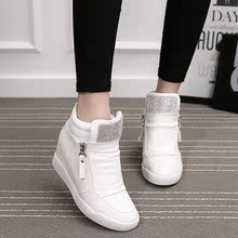 隐形内增高女鞋高帮鞋单鞋 坡跟休闲板鞋运动鞋 2017春秋韩版潮鞋