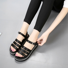 凉鞋女学生夏2017新款韩版百搭松糕厚底珍珠露趾平底罗马夏季女鞋