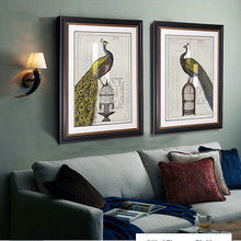 美式客厅装饰画沙发后背景墙两联现代简约时尚大气孔雀油画芯挂画