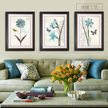 美式乡村风格客厅三联装饰画 现代简约卧室餐厅有框画墙壁挂画