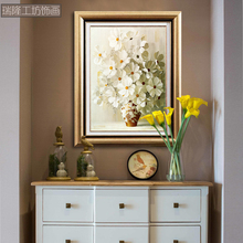 欧式玄关单幅装饰画 竖版书房花卉高档有框画 美式油画墙壁挂画