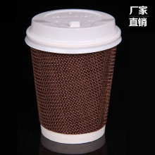 8安 250ml 一次性纸杯 双层 加厚 咖啡奶茶螺纹杯 带盖批发 500个