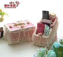 田园木质制布艺多用纸巾盒创意抽纸盒纸抽盒客厅桌面遥控器收纳盒