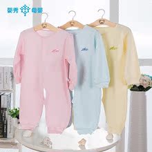 婴秀婴儿纯棉薄款内衣套装全棉宝宝秋衣秋裤新生儿童背带裤两件套