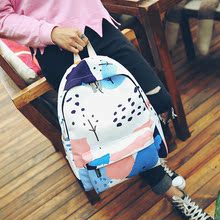 原宿大容量帆布双肩背包女学院风中学生书包水墨画印花电脑背包潮